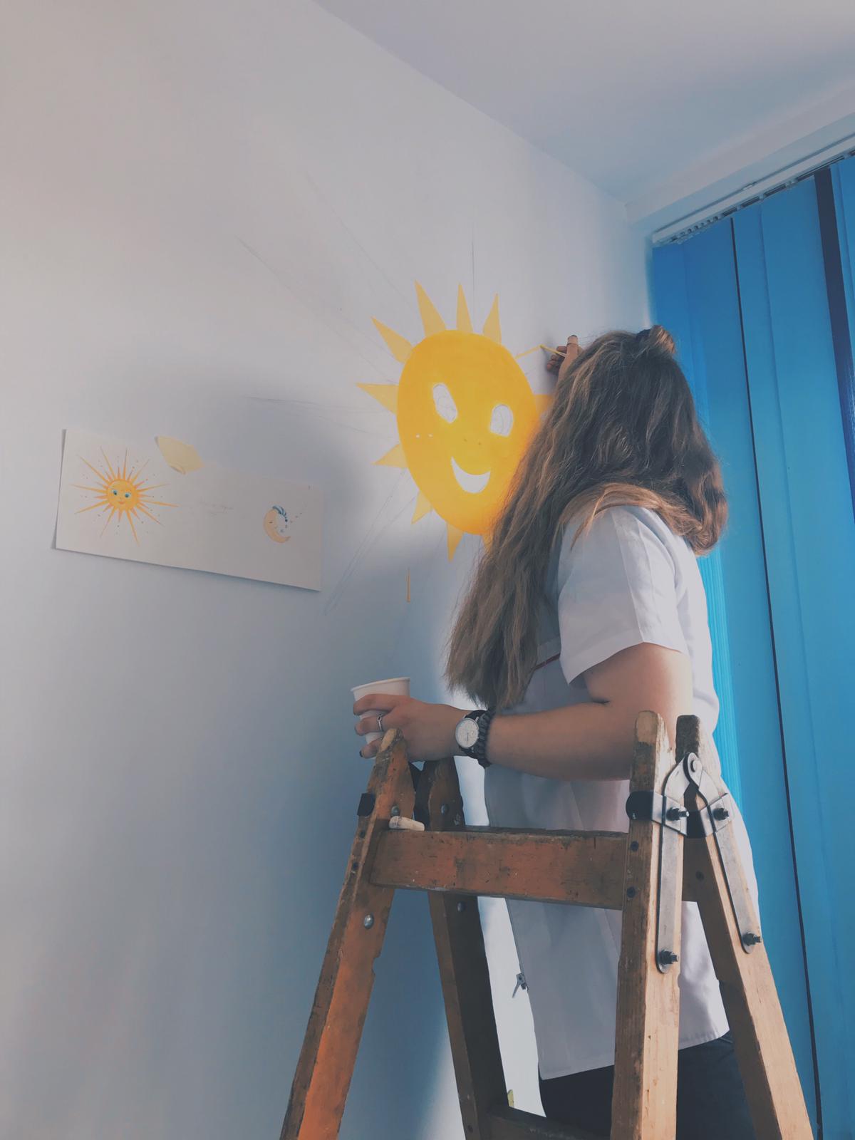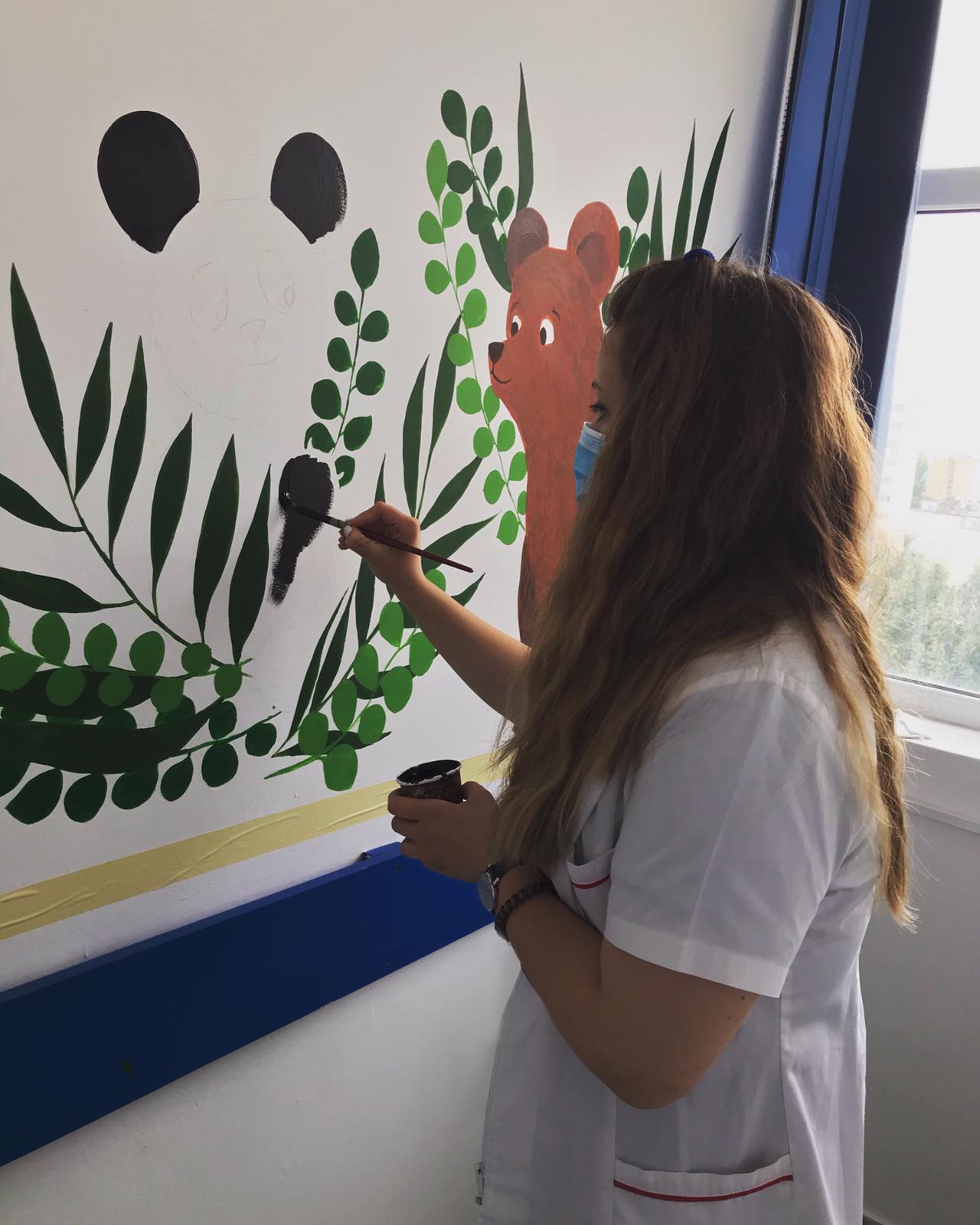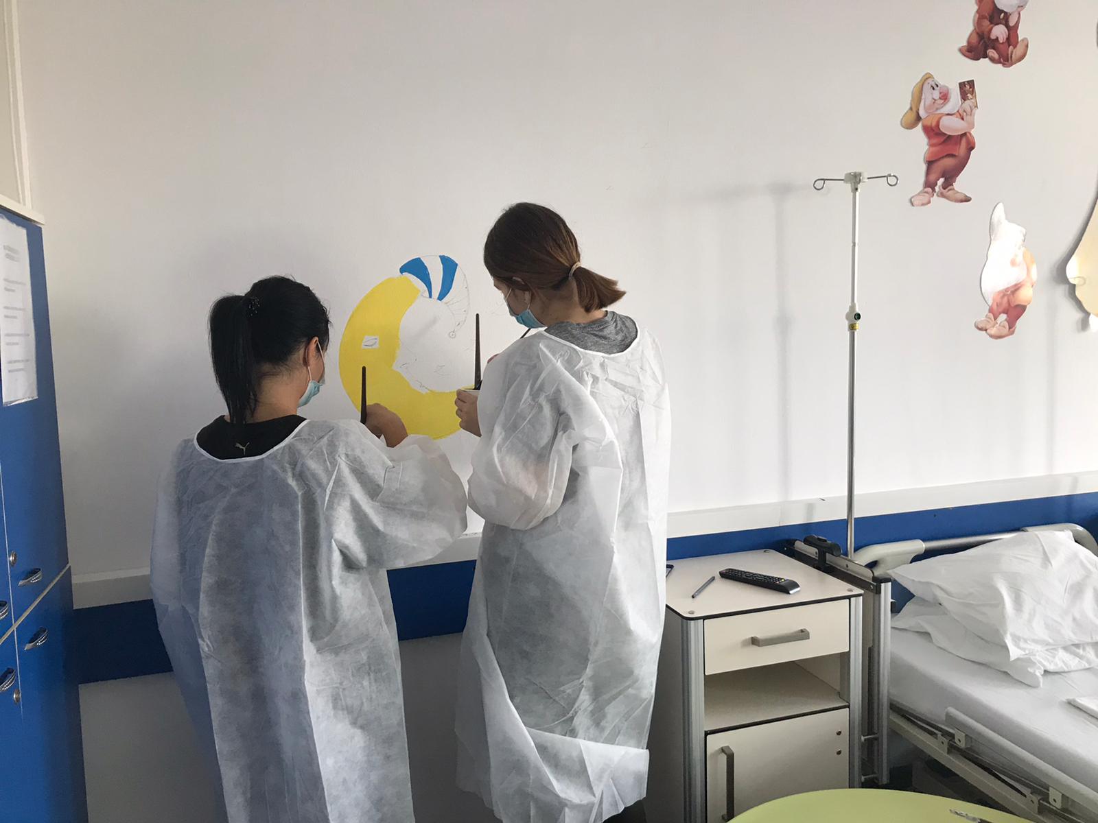 Un grup de 10 voluntari, dintre care doi studenţi de la Universitatea Națională de Arte „George Enescu” Iași - Facultatea de Arte Vizuale și Design, şi 8 elevi ai Colegiului Naţional Pedagogic „Spiru Haret” Buzău au pictat pereţii saloanelor cu personaje de poveste.
