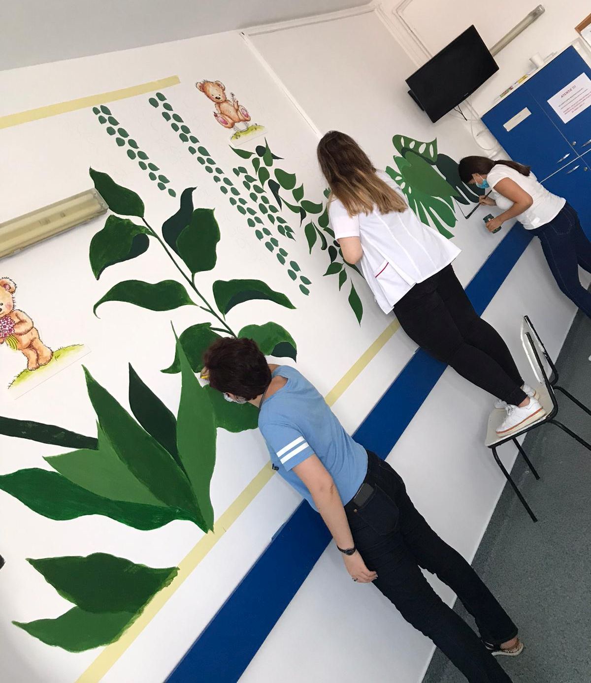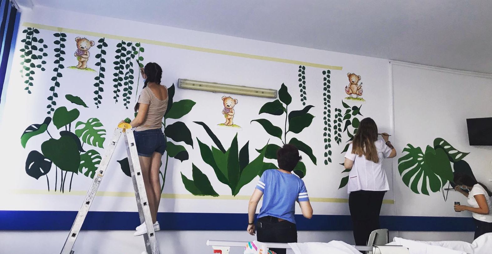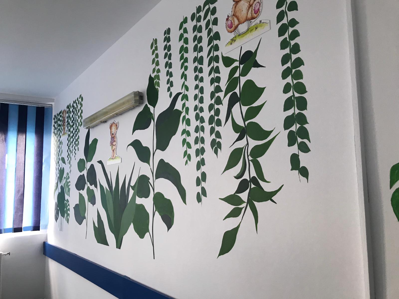 Un grup de 10 voluntari, dintre care doi studenţi de la Universitatea Națională de Arte „George Enescu” Iași - Facultatea de Arte Vizuale și Design, şi 8 elevi ai Colegiului Naţional Pedagogic „Spiru Haret” Buzău au pictat pereţii saloanelor cu personaje de poveste.