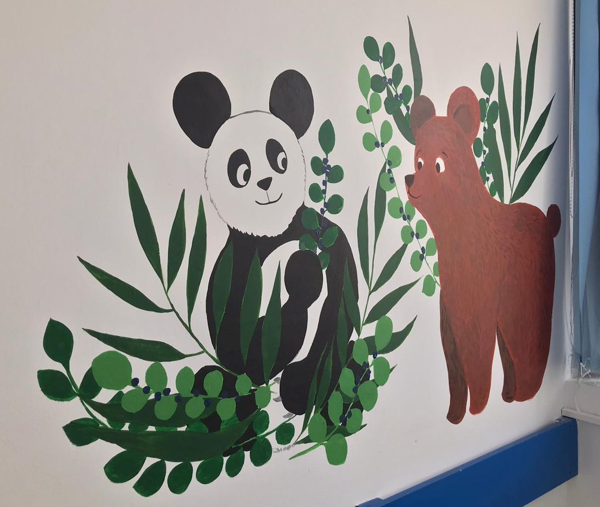 Andreea Zaleschi, masterand Universitatea Națională de Arte Iași: „Am rezonat cu propunerea celor de la Spitalul Județean de Urgență Buzău de a picta pereții saloanelor din secția Pediatrie. Pentru mine, acest proiect a însemnat atât un joc artistic, cât și o provocare, fiindcă, pe lângă pensule și acrilice, lucrăm cu emoțiile, le transpunem vizual pentru a fi primite de cei care le observă, dăm viață poveștilor, le ducem mai departe, împânzim diverse locuri cu imagini care să creeze stări de bine. Iar asta presupune multă grijă și atenție. Venit din suflet/inimă pentru alte mici suflețele, pictura murală de la Pediatrie a însemnat o pânză de emoții țesută din povestioare dragi copilăriei mele, cu personaje vesele și compoziții animate, dar și multă voie bună și zâmbete, toate acestea din dorința de a colora starea celor mici care ajung pe holurile secției Pediatrie.